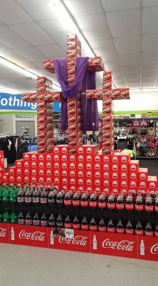 A perfect illustration of the American South. This was posted on my FB feed. A local store has this display up for the Easter Season, and many, many people were thanking Jesus for the store and its "bravery" in witnessing for Christ.